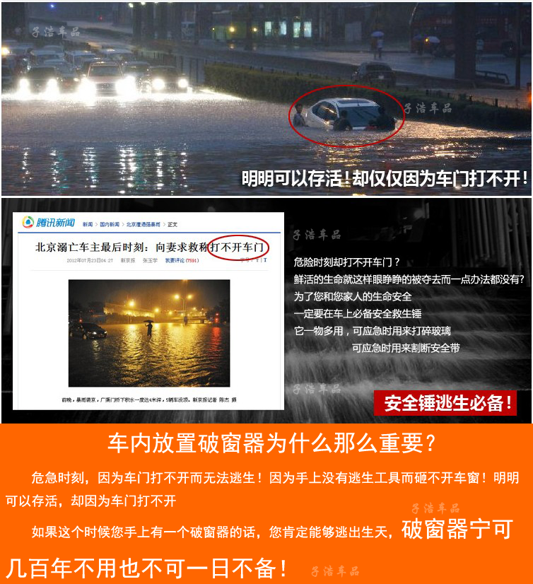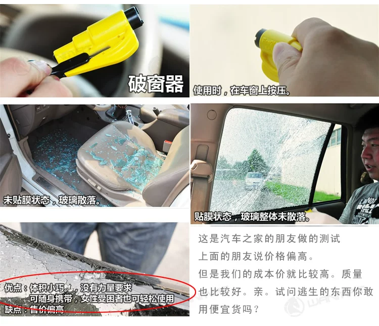 This product is for emergency vehicles on the self-help tools in meet specialemergency, trapped in the car drivers can use this tool to cut the belt and failure in the window can not be opened smash it escape