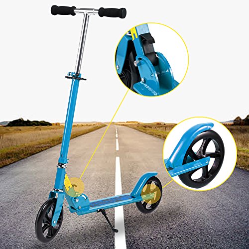 -. Feature : Super Smooth and High Durability-- The two wheeled scooter with extra-large 8"(200mm) urethane wheels and Soft hand grips greatly reduces vibrations in Plain/Bumpy/Rough Road / Portable and Foldable--No assembly request, easy to fold and carry,3-Seconds Easy-Folding Mechanism suit for city urban scooter's quick storage and transportation / Adjustable T-bar--Two big wheeled scooter with 3 level Adjustable Telescoping handlebar, range 90-102cm/ 35.4-40.2 inch.Suit for adult teens and kids age 10 up, Max Supporting weight 220lb (100KGS) / Durable Design-- High density durable aluminum alloy frame and precision technology with good stable and security. Creates an incredibly smooth glide, Perfect for City/Urban/Suburban pavements / Package Content-- 1 x Kick Scooter,1 x Manual