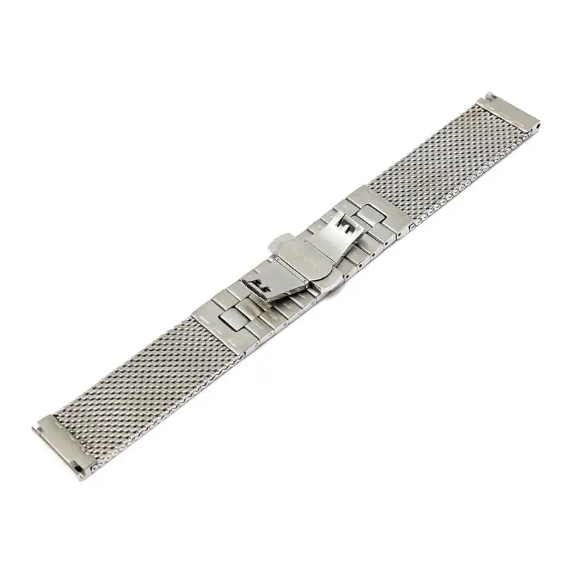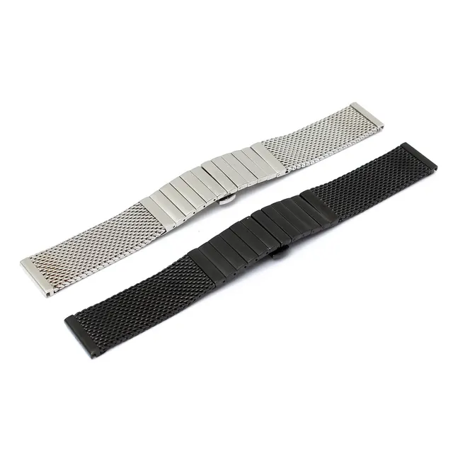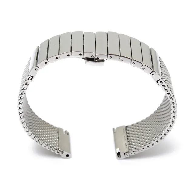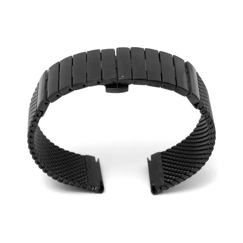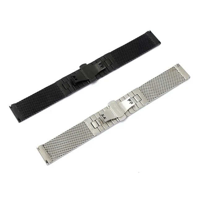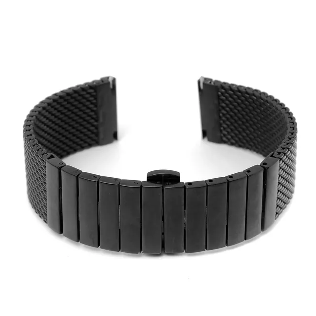 | [해외]우수한 품질 18 미리메터 스테인레스 스틸 메쉬 밴드 손목 시계 스트랩 푸시 버튼 스트레이트 엔드 블랙 실버 |