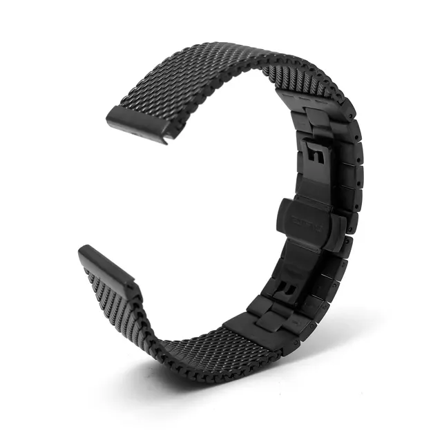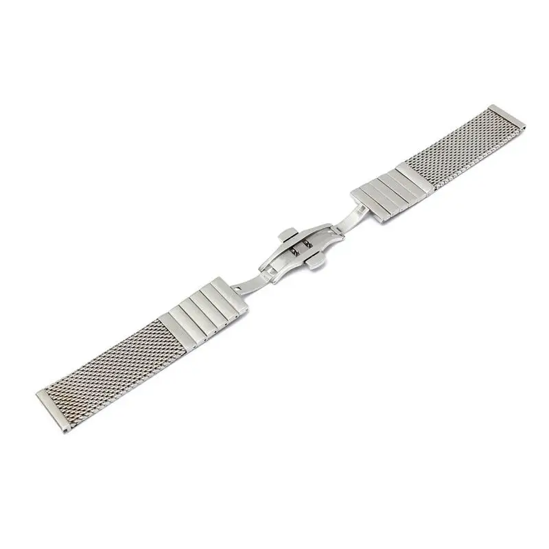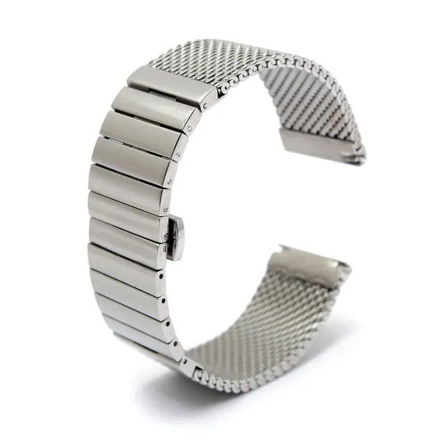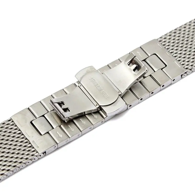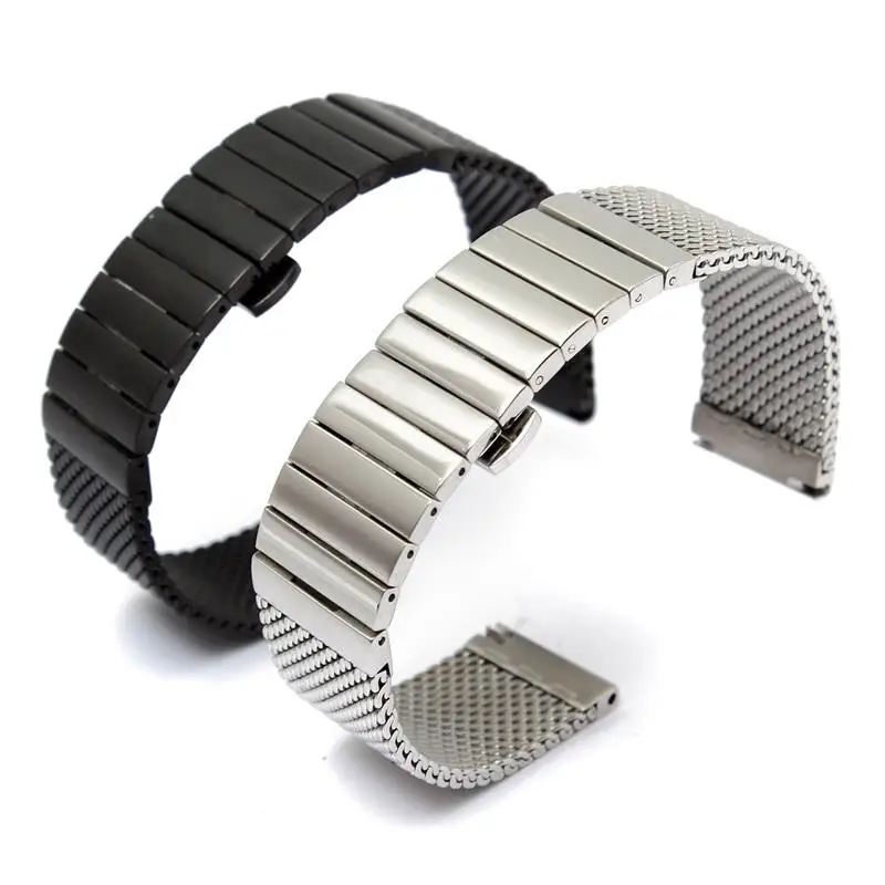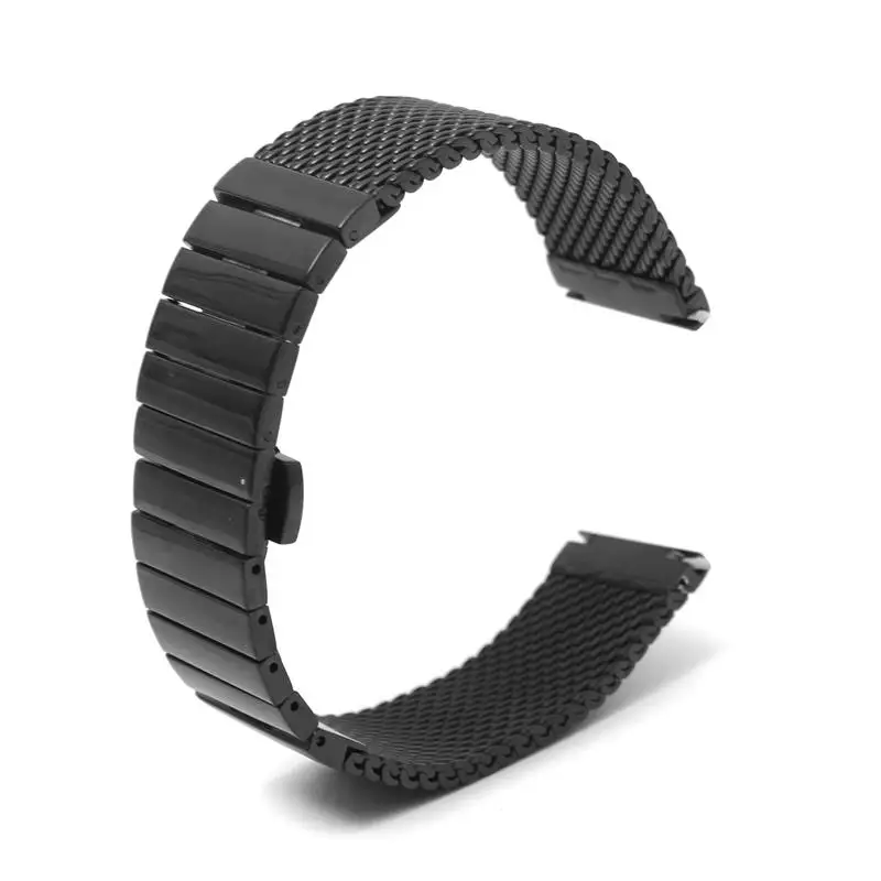 | [해외]우수한 품질 18 미리메터 스테인레스 스틸 메쉬 밴드 손목 시계 스트랩 푸시 버튼 스트레이트 엔드 블랙 실버 |