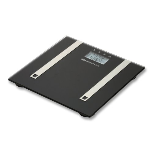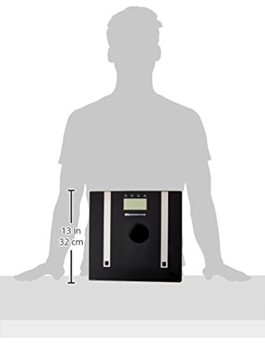 -. Feature : High-precision sensors estimate body fat, body water, and muscle mass percentages within 0.1%. / Share this scale with others pursuing a variety of health goals and needs with 4 user memory options in normal and athlete modes. / Built to accommodate up to approximately 400 pounds (180 kilograms), this black glass platform features sleek, modern styling with stainless steel accents. / Read weight and body fat/body water percentages at a glance with the 1.5-inch dual line LCD display. / Never worry about excessive battery drain with instant on, auto off, and a low battery indicator.