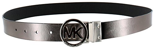 The Michael Kors Women's Reversable Belt will provide you with signature styling. This belt features circle bucket with MK logo, pebbled black leather on one side, reversable side features metallic or brown leather, and an adjustable wear. Michael Kors is a globally awarded designer who produces luxury items that carry unfaltering designs which are sure to withhold the tests of time. These products are built to last and stay up with latest fashions and styles, leaving you with the most desired looks.Feature