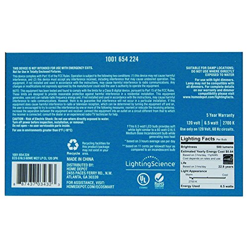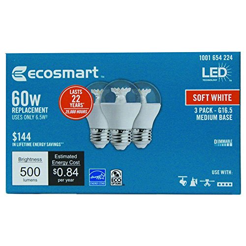 Ecosmart 60W Equivalent Soft White Dimmable Clear G16.5 LED Light Bulbs Medium Base 3 Pack