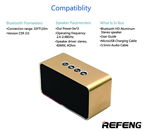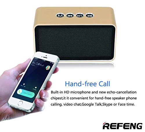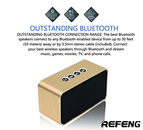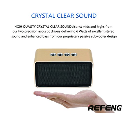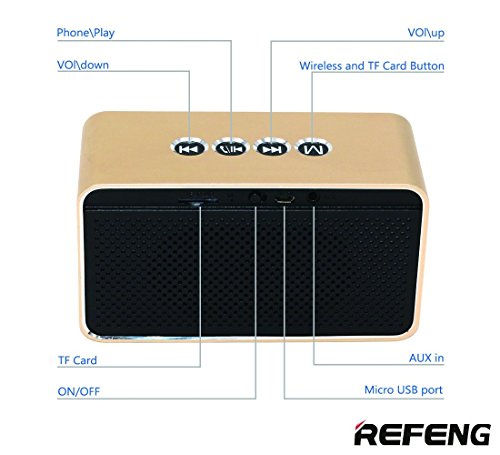 -. Title : ReFeng Classic portable wireless bluetooth speaker, Hi-Fi stereo with built-in microphone, Enhanced Bass Clear Treble, works with iPhone, iPad, Samsung, Nexus, HTC ( Gold)
