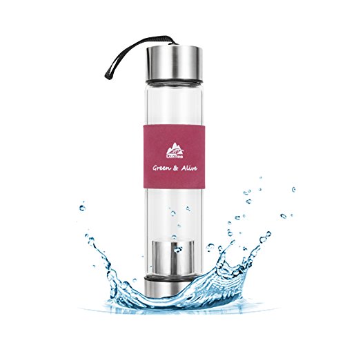 -. Title : Luxtea Insulated Glass Water Bottle with Filter Removable Infuser - Portable Sport Travel Bottles with Circle - 16 Oz