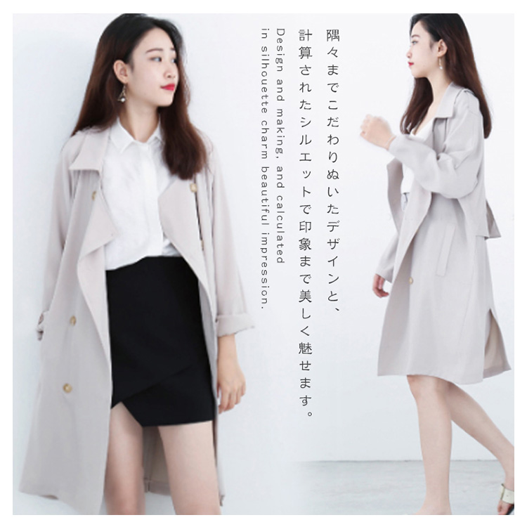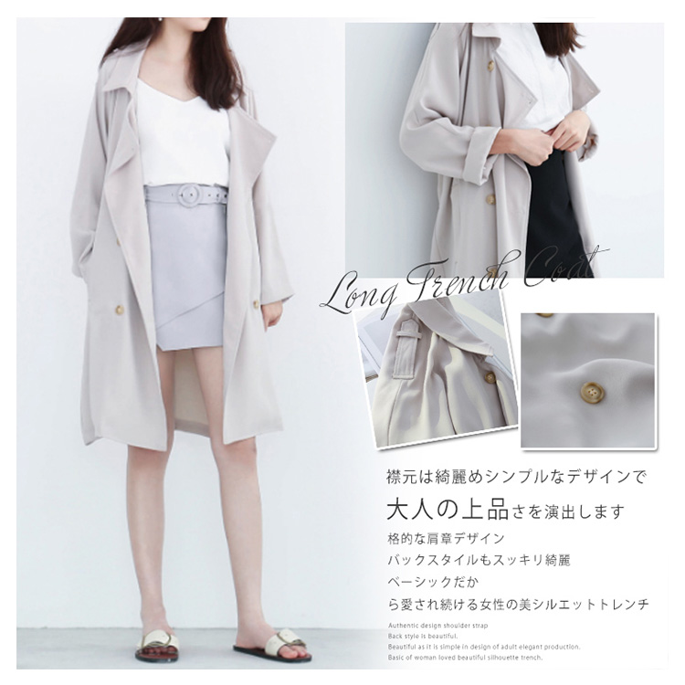 | 大人レディーの定番!洗練された美しさを譲り出すスプリングコート。隅々までこだわりぬいたデザインと、計算されたシルエットで印象まで美しく魅せます。ONにもOFFにも着回せるから、1枚は持っていたいアイテムです。 | |