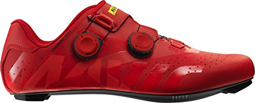 Studio : Mavic Publisher : Mavic Binding : Apparel Product Description The Mavic Cosmic Pro Shoe is a lightweight shoe designed for racing, and more importantly climbing, in the professional cycling race world. The Mavic Ergo Dial allows you to tighten your shoe quickly and precisely to get the perfect fit. The super thin micro synthetic upper has laser cut holes for aerodynamic enhancement with ventilation. The Endofit Tongue is oversized to keep your feet in the optimal position the entire ride. The Energy Frame works with the Endofit Tongue to stabilize your positioning. The Energy Carbon Outsole directly shifts your power from your body into your bicycle with an impressive Index Energy Transfer Rating of 80. Available in Black/Yellow and Fiery Red. 0