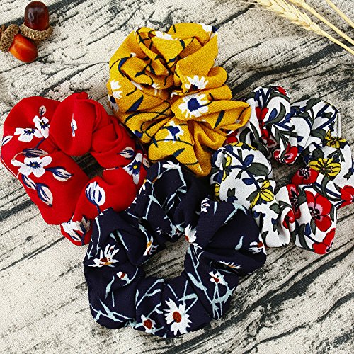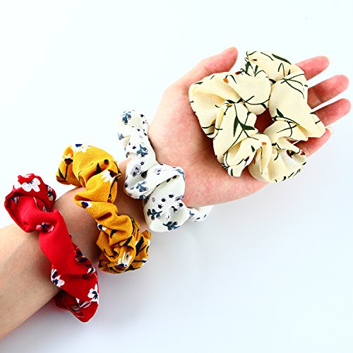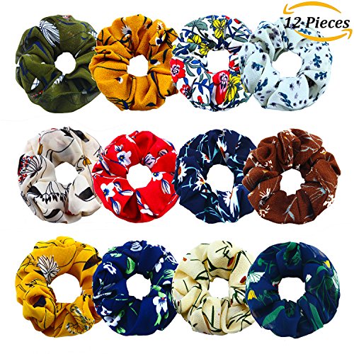 - 12 different floral scrunchies: Various floral designs, wear different scrunchies every day, fit different hair styles, nice and elegant on hair, match with more outfits, enough floral scrunchies for backups.