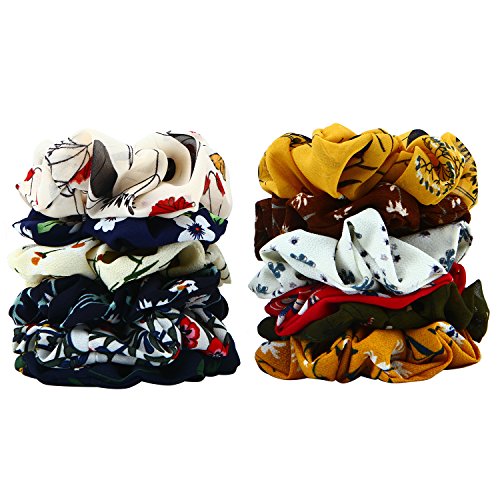 Aneco 12 Pieces Chiffon Hair Scrunchies Women's Flower Hair Scrunchies Hair Bobbles Chiffon Ponytail Holder, 12 Style