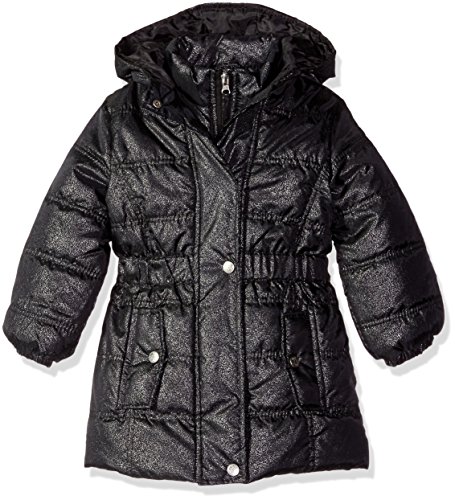 Pink Platinum Big Girls' Spray Foil Long Puffer Jacket, Black, 14/16
