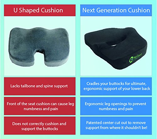 - Feature : YOU WILL RECEIVE A BONUS eBOOK with your chair seat cushion from the experts at Nutrition To The Edge. This book is a $19.99 value and was specially designed for Refined Ergonomics to provide easy to implement nutritional information to our customers on healing pain and getting better sleep. At Refined Ergonomics we care about helping you with pain and your long term health! / SAY GOODBYE TO PAIN with the latest, patented, memory foam seat cushion! Orthopedic support from this medium firmness coccyx cushion will blow you away with comfort. / UNLIKE THE AYILO CUSHION style, this comfort foam seat cushion will not cut off leg circulation as the ergonomic shape provides great support without putting unnecessary pressure on the back of the legs or leaving the base of your spine and tailbone unsupported. Our cushion also has an anti-slip backing to insure your orthopedic seat cushion stays put and doesn't lead to further pain by sliding around. / THIS CHAIR SEAT SUPPORT can be a great alternative to the wedge car seat cushion or doughnut as well as being a seat support for office chairs, sitting pillow for kitchen chairs, added comfort for long plane and auto rides, and anywhere you find yourself in a seat all day. / AT REFINED ERGONOMICS we take great pride in the quality and design of these black chair cushions! Pads for comfort and pain relief are no laughing matter. This is why we offer a 1 Year Satisfaction Guarantee. If you aren't happy and comfortable, we aren't either!