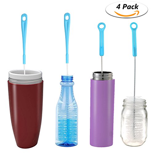 Fixget 4 Pack 16 Inch Long Bottle Cleaning Brush for Narrow Neck Bottle Washing, Bottle Brush Cleaner for Washing Beer, Wine, kombucha, Brewing Bottles, Pitcher, Carafe, Glass Jars, Sports Bottle