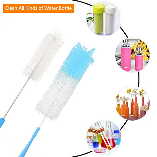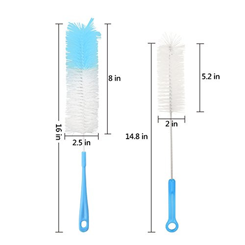 ◎.Wildly Used: 2 pack 16*8*2.5 inches bottle brush and 2 pack 14.8*5.2*2 inches bottle brush makes it more wildly compatible for washing beer, wine, kombucha,pitcher,carafe, glass jars and sports bottle.