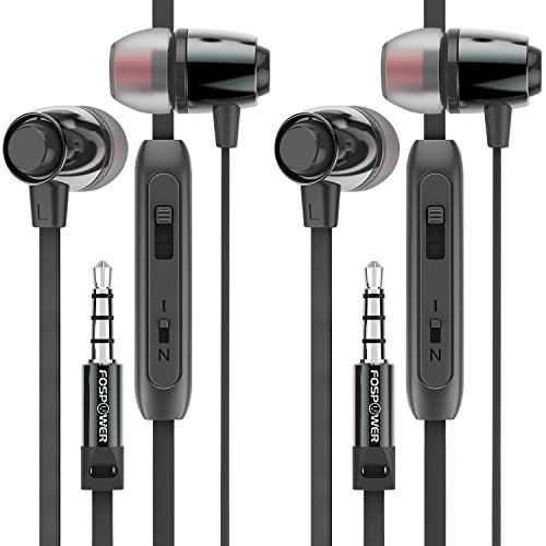 In-Ear Headphone Earbuds (2 Pack), FosPower Tangle Free Flat Cord, Noise Isolating Earphone w/ Mic & Audio Control for iPhone 6S Plus/6S/iPad/Macbook, Galaxy S8 Plus/Note 8, PS4, Xbox - Black