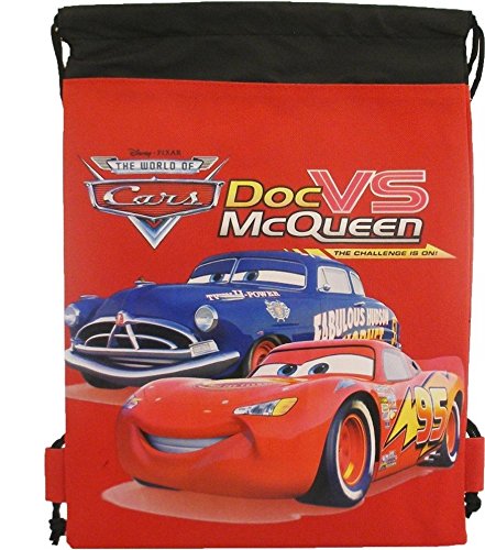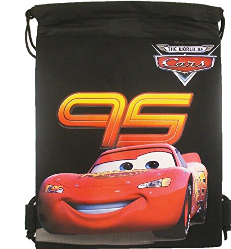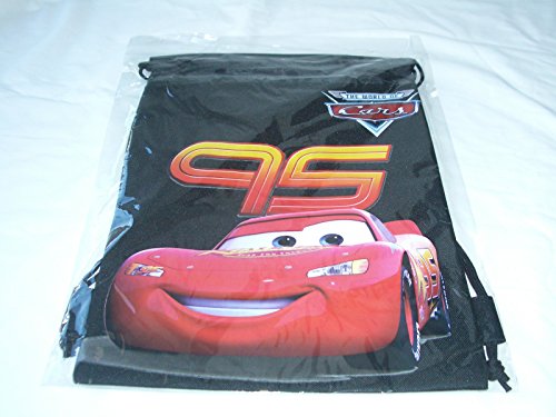 Disney Cars 10" X 14" Drawstring Backpack Heavy Duty Nylon Tote Bag Color (Blue, Red, or Black) (BLACK)