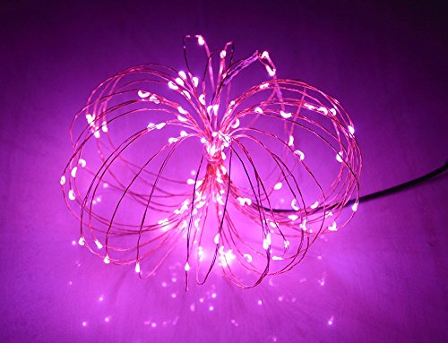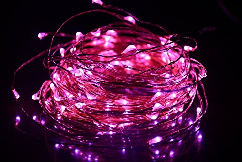Fheimin Dimmable Led String Lights Waterproof Copper Wire 33ft LED Starry Light with UL certified 12V Power Adapter with Remote Control For Valentine's Day Wedding Party for indoors outdoors (Pink)