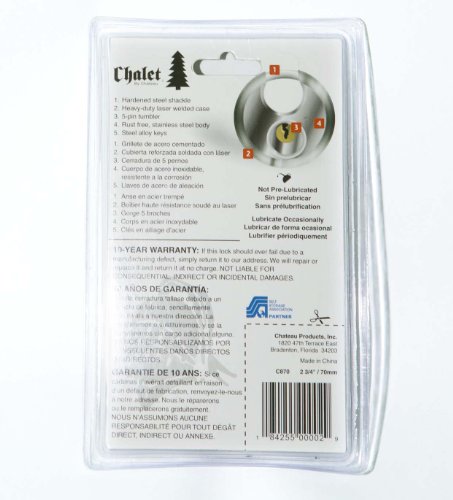 -. Title : Chalet Disk Padlock - Round Padlock with Shielded Shackle, 2-3/4-inch, Stainless Steel