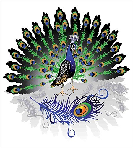 (Ambesonne)/Bedding Bath/Bedding/DIRECT FROM USA/Peacock Decor Twin Size Duvet Cover Set by Ambesonne, Male Peacock with Open Tail Reflection Il...