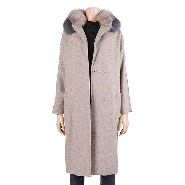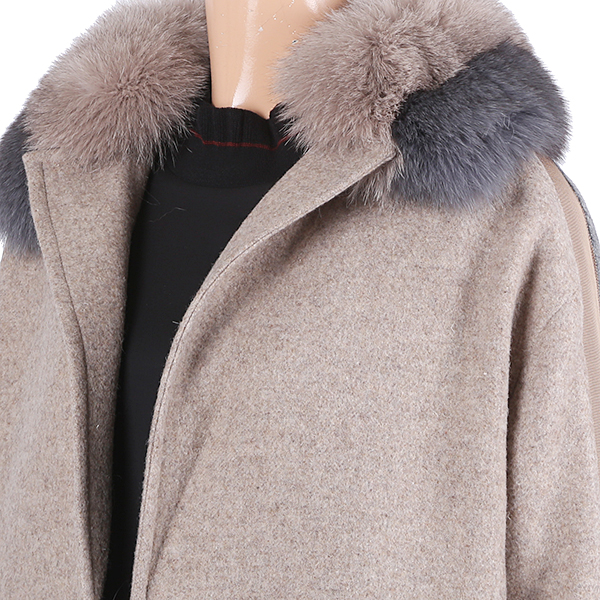 이 제품의 카라는 투톤 색 상의 여우털로 매우 젊고 케쥬얼스러우며 기본형 카라의 심플함과 나그랑어깨의 편안함