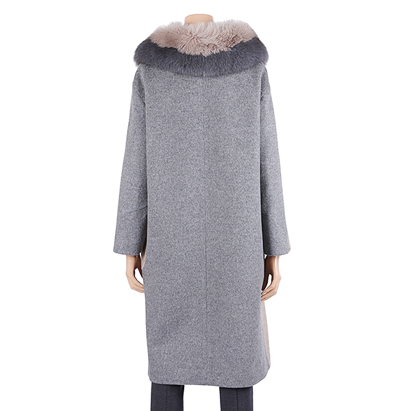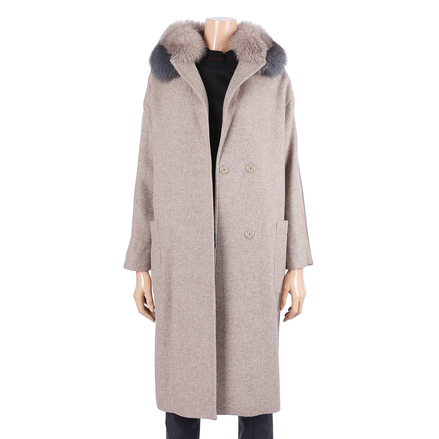 이 제품은 여우털의 투톤배색의 기본형의 투톤 오버사이즈 롱코트 입니다