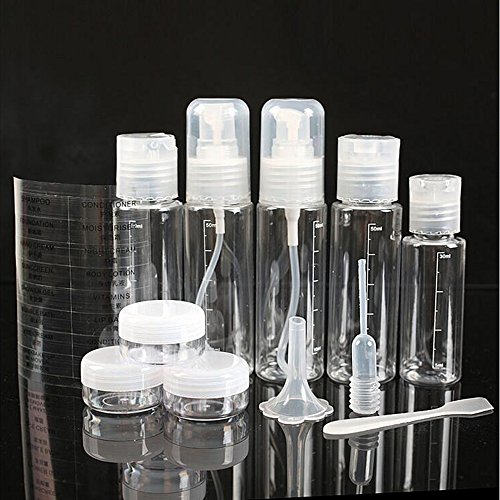 Gospire Travel Bottles Set Plastic Spray Bottle Pump Bottle Funnel for Cosmetic Makeup 11pcs Package