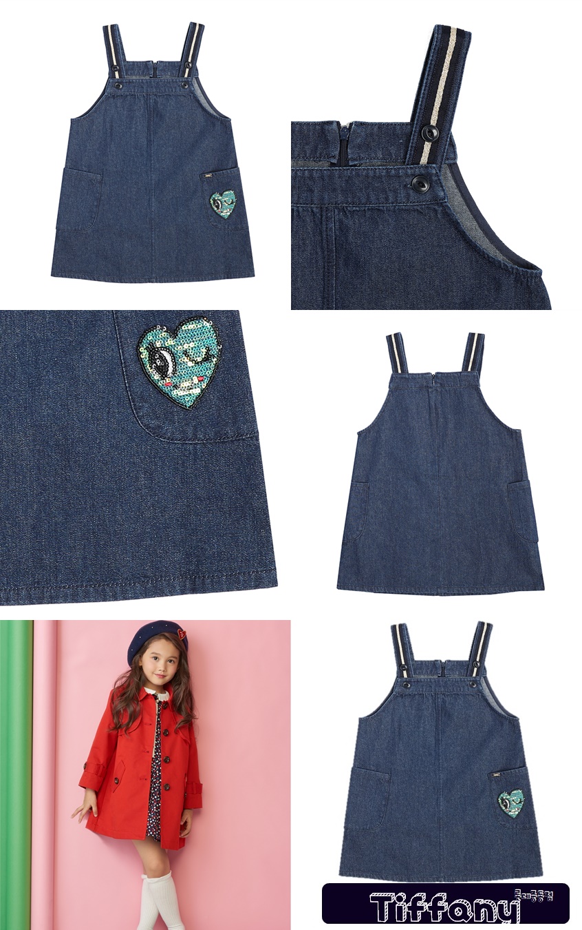 봄에 가볍게 걸칠수 있는 트렌디한 데님 멜빵 원피스 입니다.