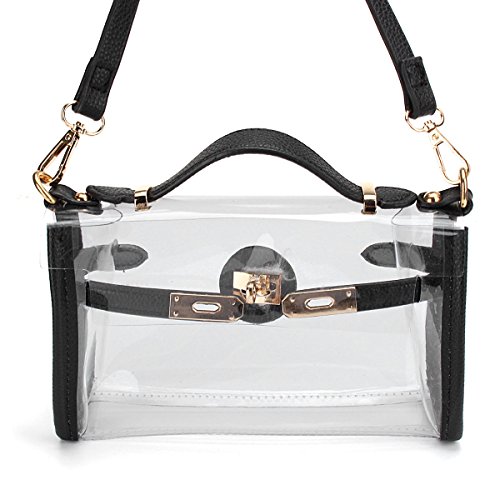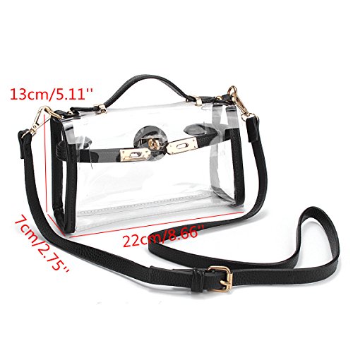 -. Feature : ➤➤Adjustable Crossbody strap fit however you want it,for hands-free carrying on the go and turn lock closure. / ➤➤It is very elegant and practical ,can store cosmetic,glasses and pocket money, phone, etc.Perfect for all ages women ladies. / ➤➤Size(L x W x H): about 22cm/8.66"x7cm/2.75"x13cm/5.11" .Shoulder belt: about 113cm/44.48".please pay attention to size, not just judge it by intuition. / ➤➤Material: PVC Plastic, waterproof design - Easy to clean inside and out.Lining:Polyester.As the use of plastic, it will inevitably taste, but soon disappeared.High quality plastic and great craftsmanship, not the cheap item. / ➤➤Pass through security with the clear bag and avoid being rejected at the gate or door .Suitable for workplaces that require clear bags and meets NFL and PGA Tournament guidelines, what's more,It is casual easy style and suitable for many occasion like School, Excursion, Going out, window shopping etc.Also,You could DIY Decoration Paster On this Bag.
