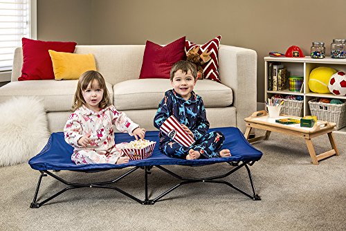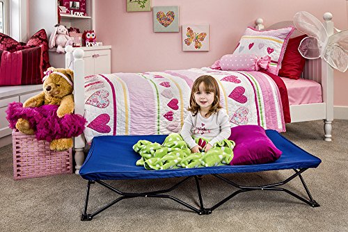 -. Feature : Portable toddler bed doesn't compromise on comfort or convenience / Comes with removable fitted sheet and travel case / Sturdy all steel frame sets up or folds down quickly / Reinforced canvas bed liner with cushioned cot cover / Ideal for camping, daycare, sleepovers or traveling