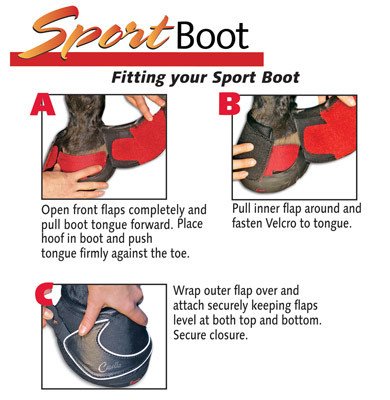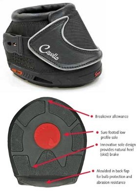 Studio : cavallo Publisher : cavallo Binding : Misc. Product Description Sport Boot by Cavallo. Offer a sure footed low-profile sole, shaped for the natual hoof to transition horses from riding shod to riding barefoot. Easy-on design protects the hoof while allowing natural expansion and contraction of the hoof wall to stimulate blood circulation and growth. Product Details: Built-in break over Unique tread pattern supports the frog Innovative sole design provides natural heel brake Integrated high density inner rim supports load bearing hoof fall 1000 Denier nylon upper is tough and durable Reflective trim for safer riding 1/4" narrower than the Simple Boot 10% lighter than the Simple Boot Available Sizes: 0 - 6 0
