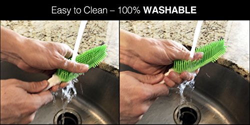 DURABLE! Easy to clean rubber tips allows you to quickly wash the brush and mitt with any cleaner -- 100% washable and reusable!