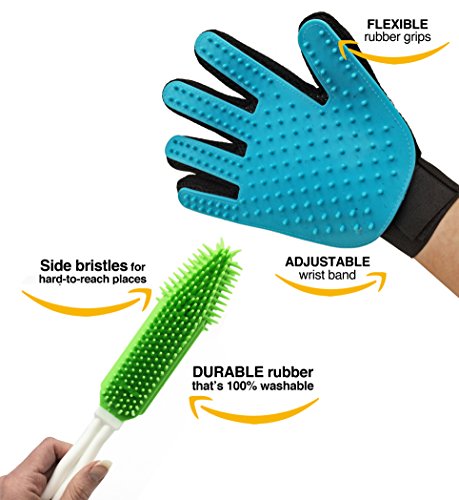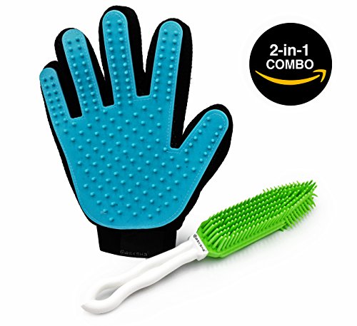 COMBO Pet Groomer Glove And Pet Hair Remover Brush Pair -- 2-in-1 Best Fur Remover And Deshedding Tools For Your Pet Hair Removal And Grooming Needs - For Dogs, Cats, Rabbits, Horses