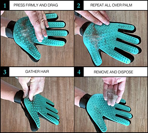 AMAZING! Top 2-in-1 five finger glove is a gentle massaging tool for your pets. Our mitt is an effective groomer and deshedding tool for cats, dogs, bunnies, horses and other small and large animals. Brush your pet while easily dematting his fur and keeping him clean without the hassle of bathing!