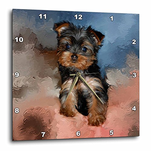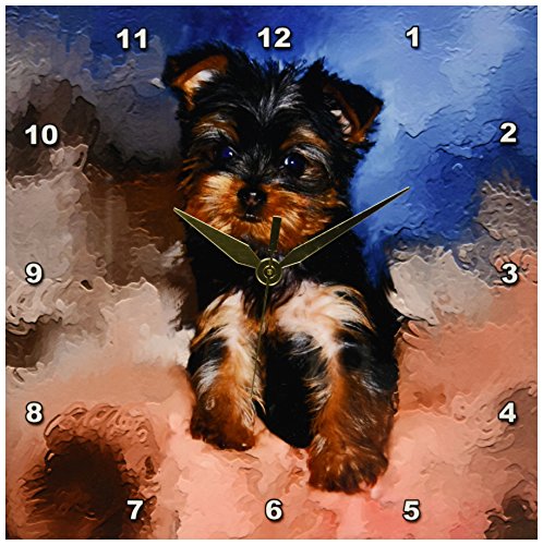 Toy Yorkie Puppy Wall Clock is a wonderful compliment to any room in your home or office. Made of durable high grade aluminum. This clock has a high gloss mirror like, UV coated, scratch resistant finish and is suitable for a moist environment. Available in multiple sizes, requires one AA battery; not included. Battery box is not covered.Feature