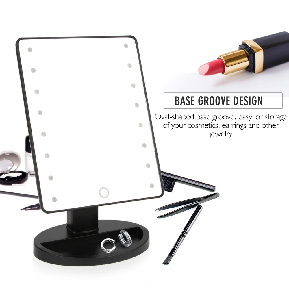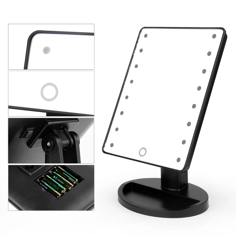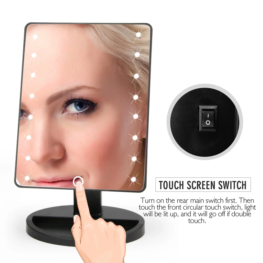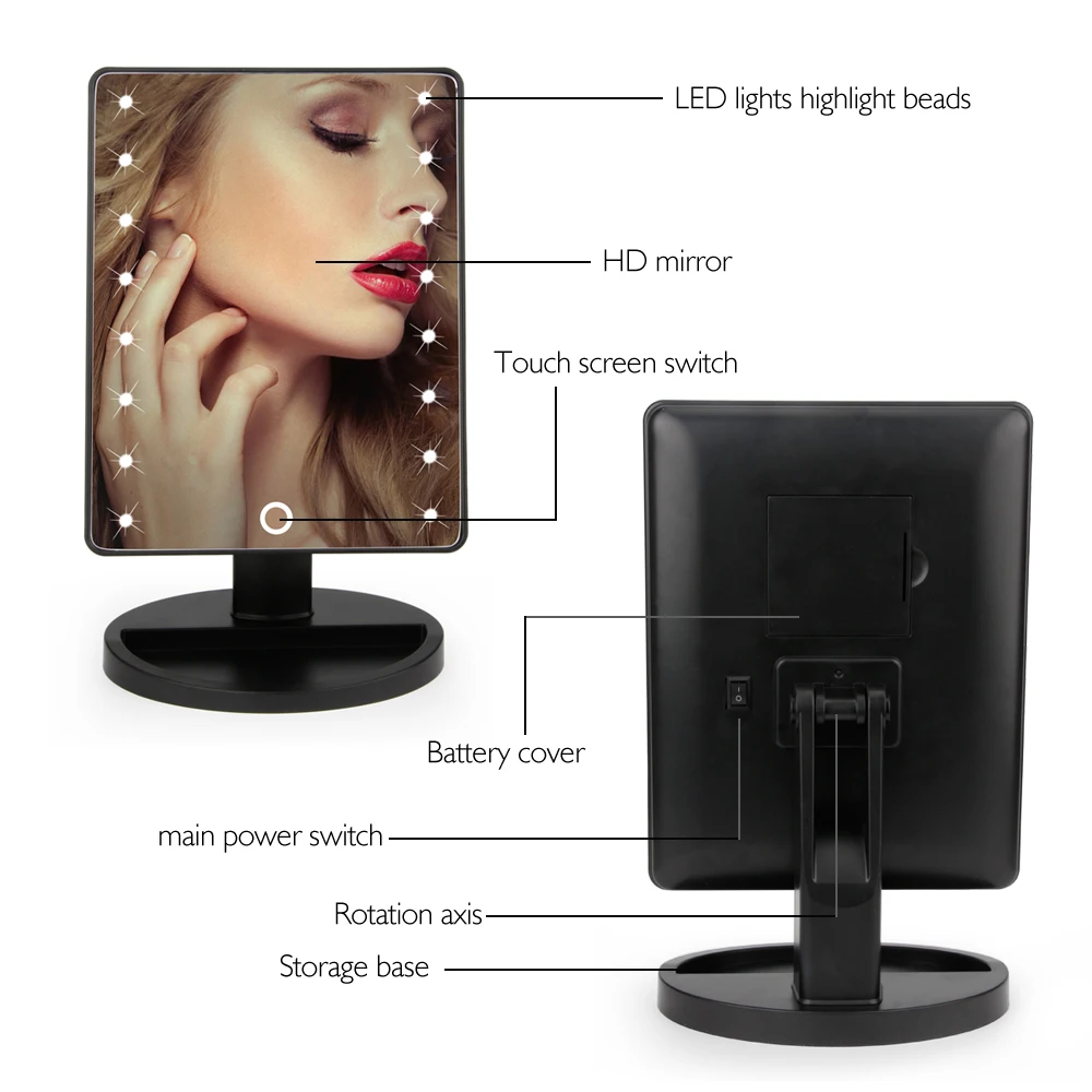 Bright Energy: 16/22 pcs of bright LEDs emit bright and soft white light,adjustable LED lighted makeup mirror with lights allow you to do your make-up in the dark or poorly lit areas.You can operated by USB charging cable (included) or 4pc AAA batteries ( not included)