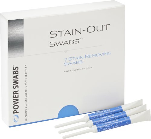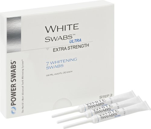-. Feature : The Power Swabs Ultimate 1-Month Intensive Teeth Whitening Kit includes 7 Stain-Out Swabs, 7 White Swabs Ultra, 1 Tooth Gloss toothpaste and 1 Stain-Out Quick Stick / No messy strips or annoying trays: Just swab for 5 minutes a day! / Clinically proven to whiten teeth an average of 2 shades after the first use and 6 shades in 7 days / Patented two-step solution re-hydrates enamel before whitening, meaning limited to no teeth sensitivity or gum irritation / Works to remove stains on caps, crowns, veneers and other dental restorations