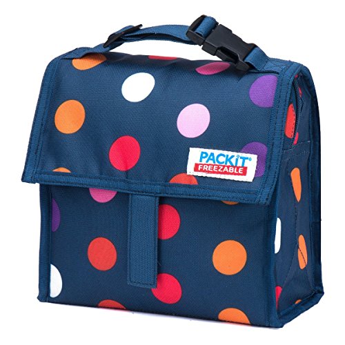 The PackIt Mini Lunch Bag is mini, but mighty! This cooler is sized just right for kid's meals and adults who want to snack on the go. It fits easily into any backpack or gym back so you can carry it anywhere. The patented freezable gel liners keep your food cool for up to 10 hours and drops the temperature of your contents by 25 degrees in the first hour. All packit bags are made from hand washable, durable polycanvas and seal tightly to prevent leaks. Folds up neatly for convenient storage.Feature