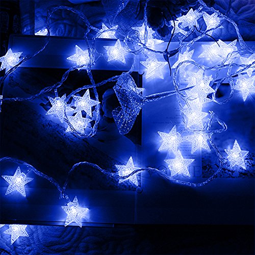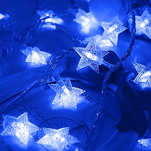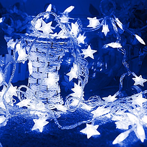 KOBWA Star String Lights,16ft 50 LED DIY Fairy Indoor/Outdoor Christmas Decorations Glowing Lights Battery Operated with 2 Modes for Garden,Patio,Bedroom,Christmas,Wedding,Birthday Party(Blue)