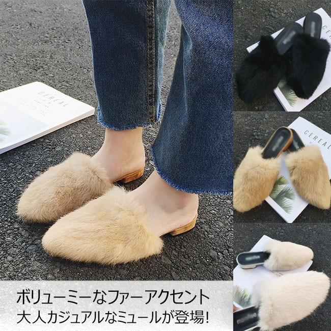 ボリューミーなファーアクセント大人カジュアルなミュールが登場♪
