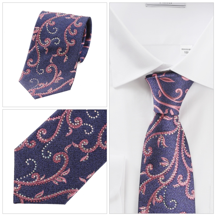 실크100%의 고급소재에  볼드한 당초무늬에 큐빅이