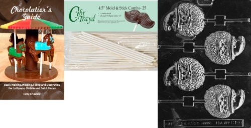Cybrtrayd 'Crafty Santa Head Lolly' Christmas Chocolate Candy Mold with 25 4.5-Inch Lollipop Sticks and Chocolatier's Guide