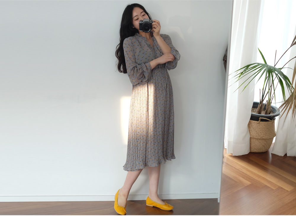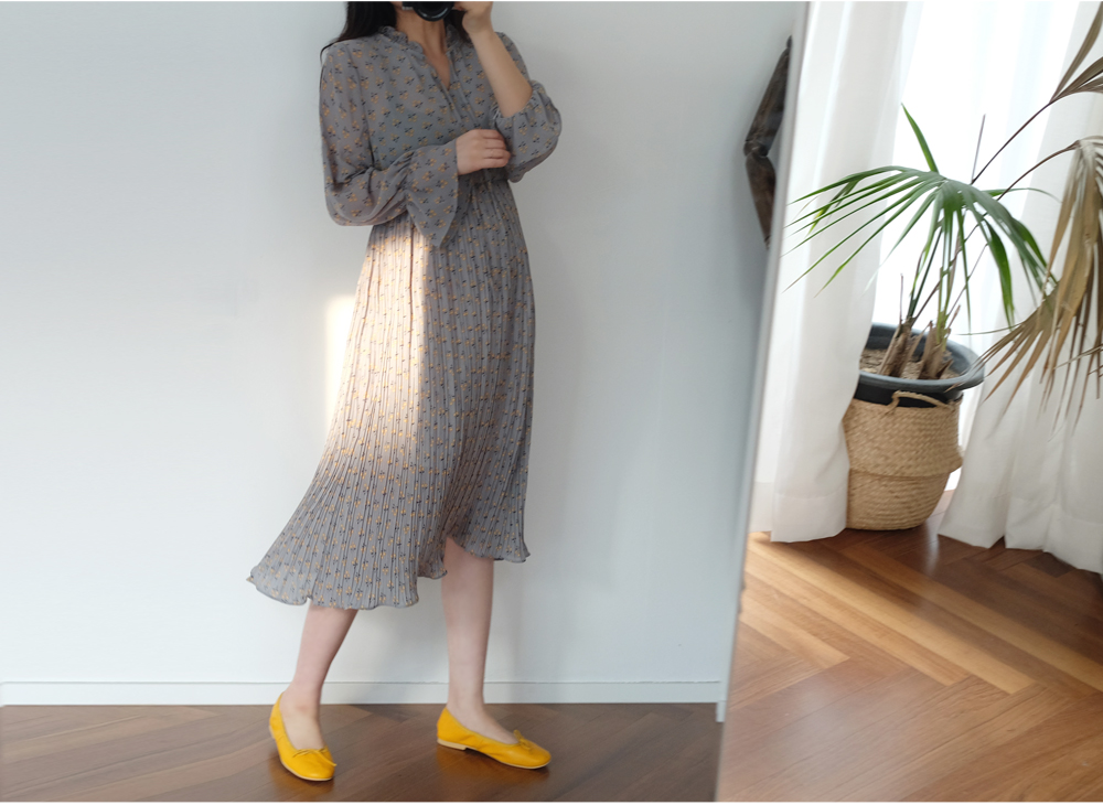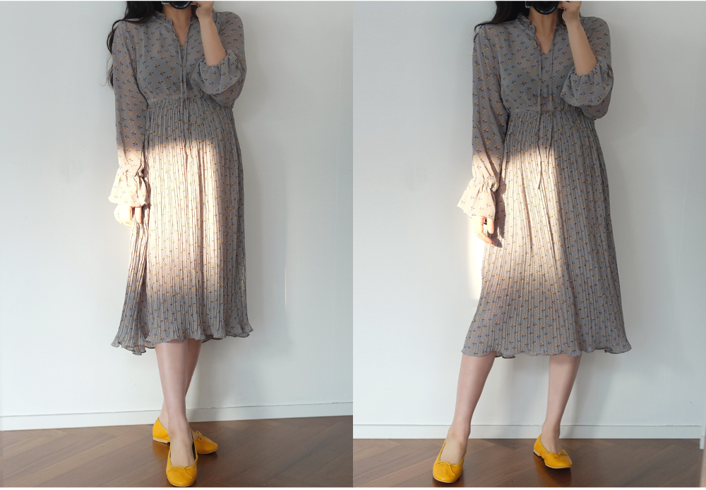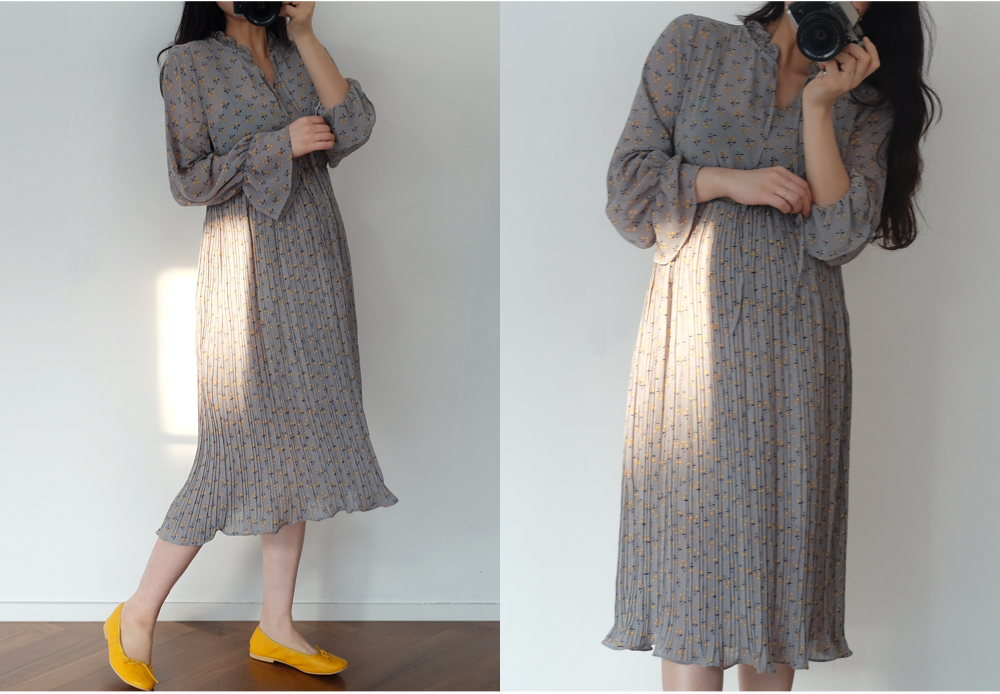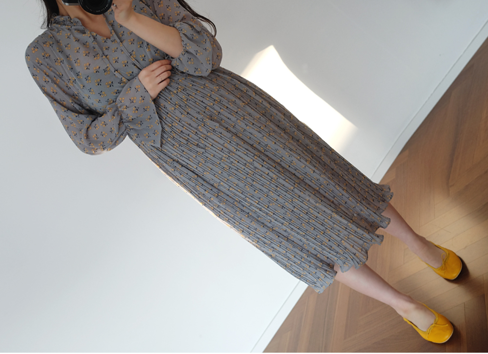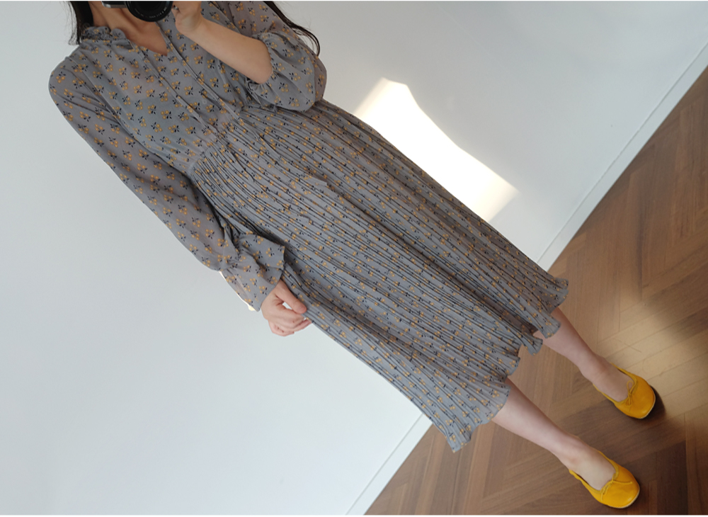 촘촘한 주름디테일로 하늘하늘 여성스러운 쉬폰 롱 원피스 소개해요:)