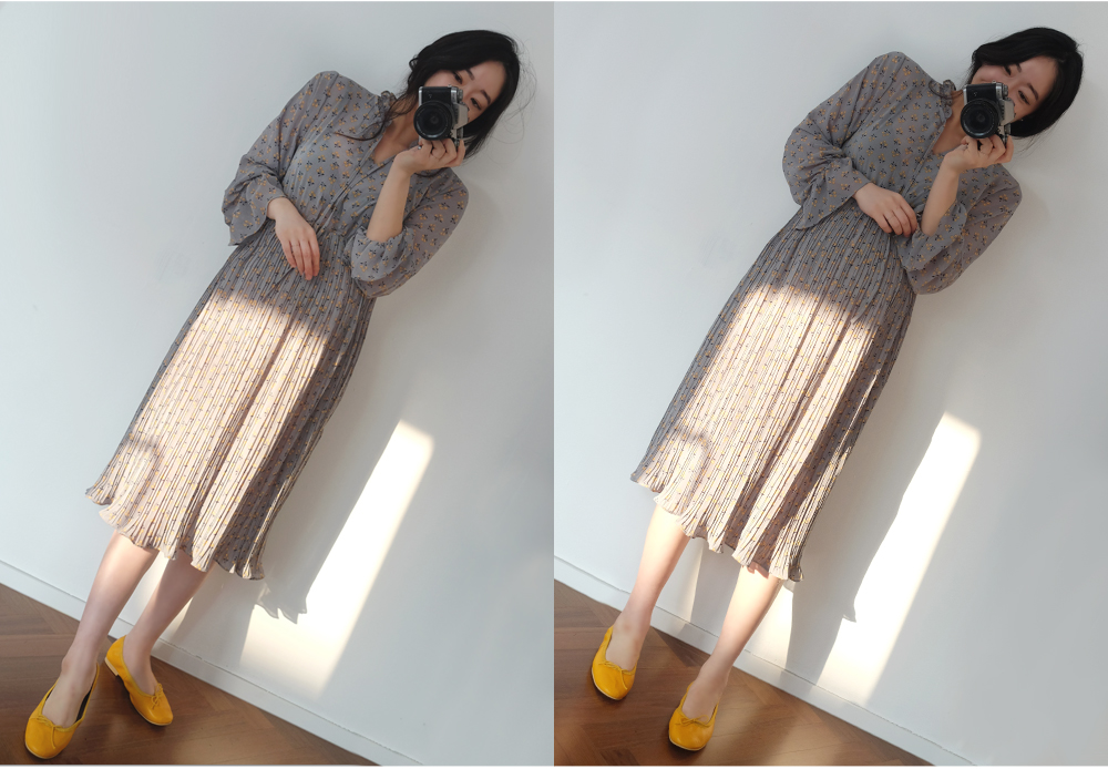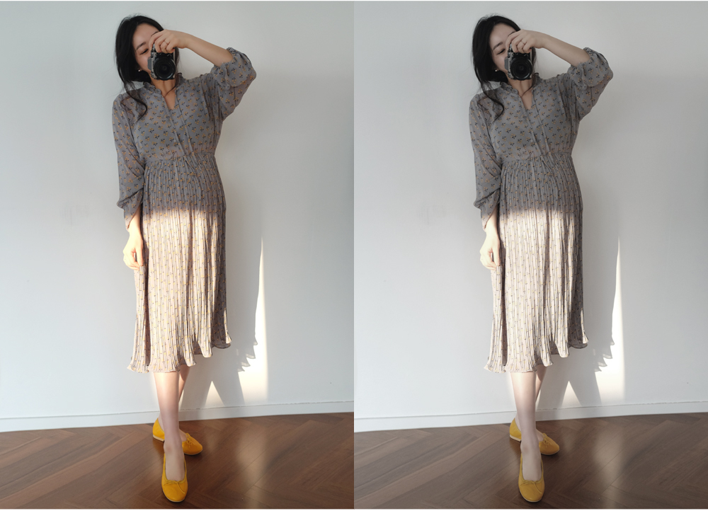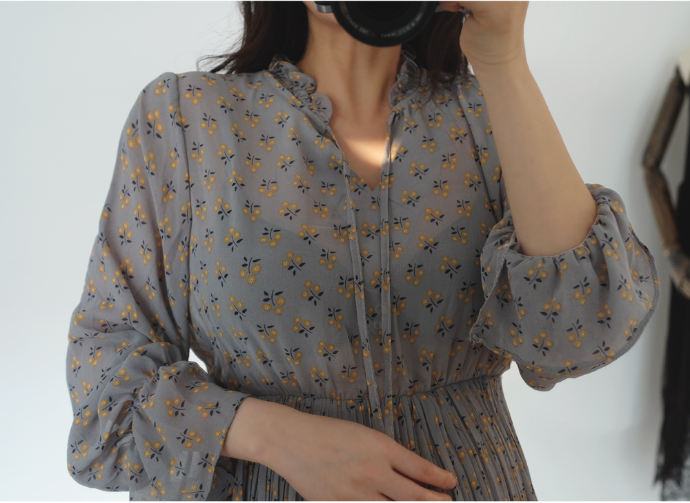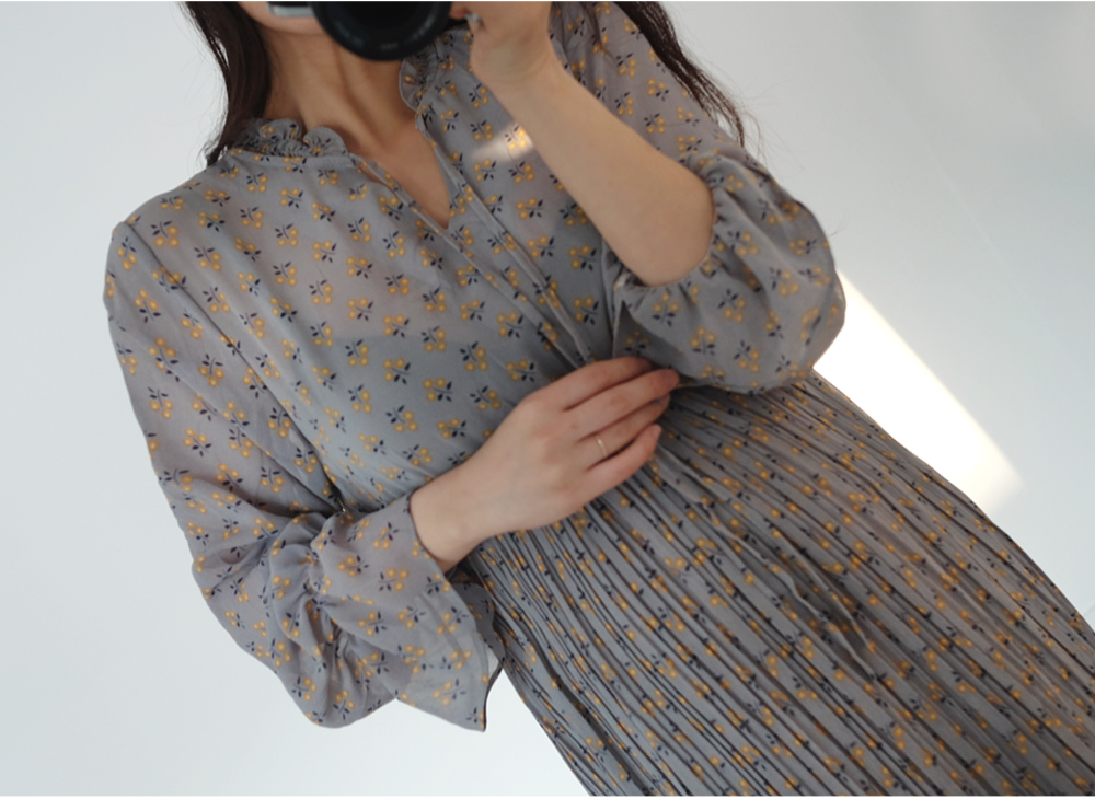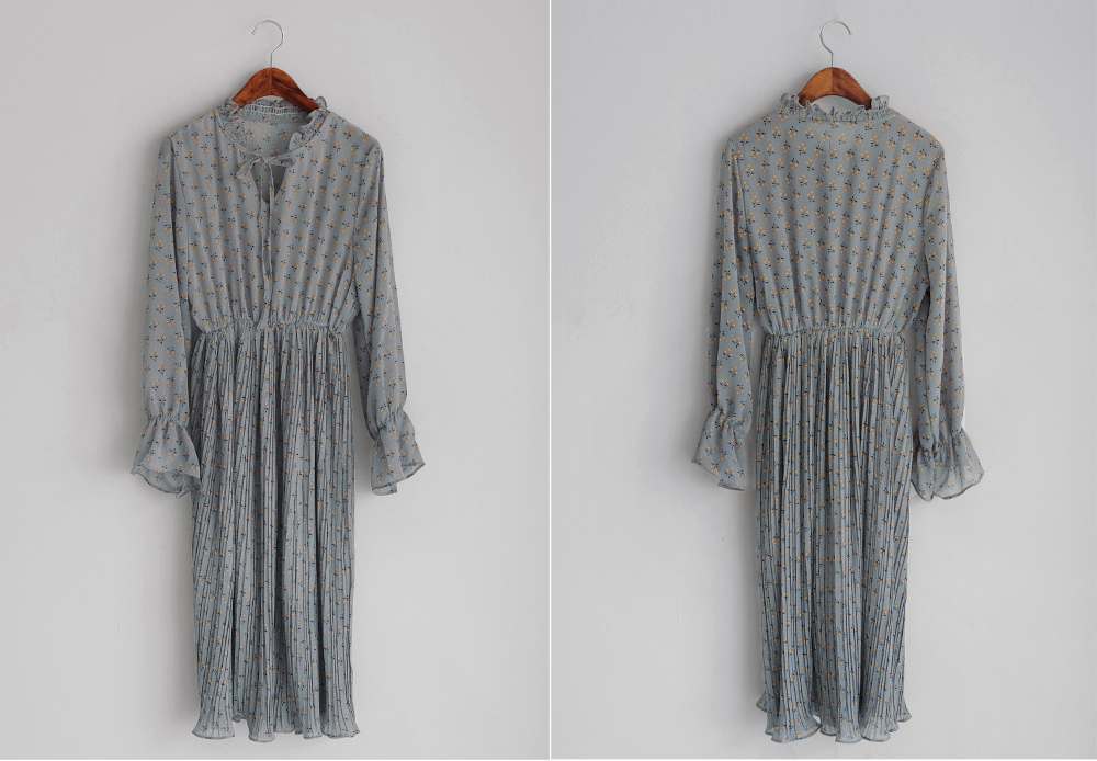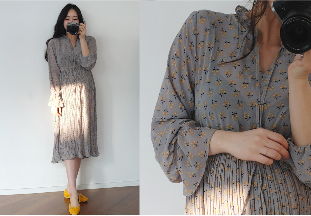 촘촘한 주름디테일로 하늘하늘 여성스러운 쉬폰 롱 원피스 소개해요:)