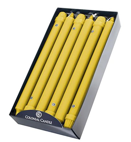 Colonial Candle Classic Unscented Dripless Dinner Tapers in Saffron Yellow, 12" - Set of 12