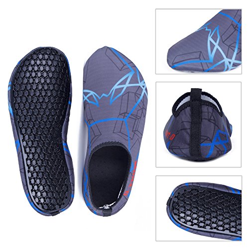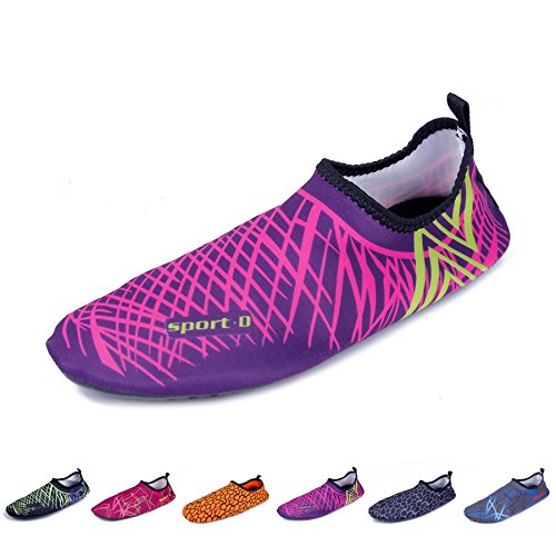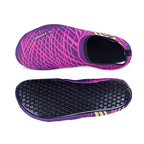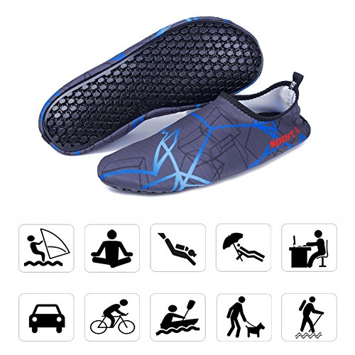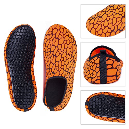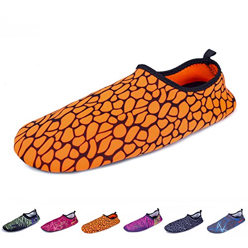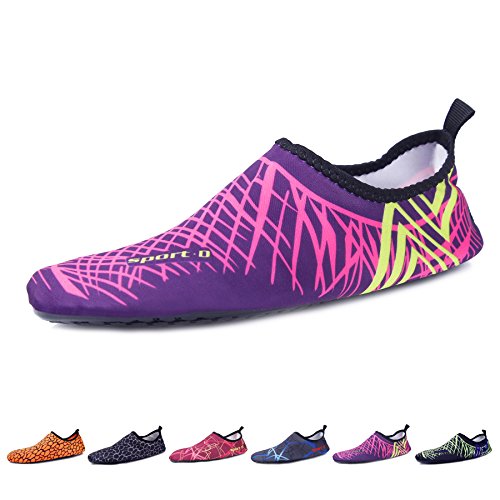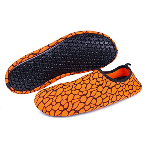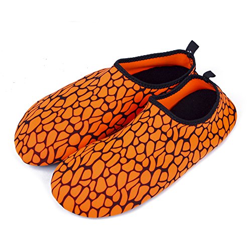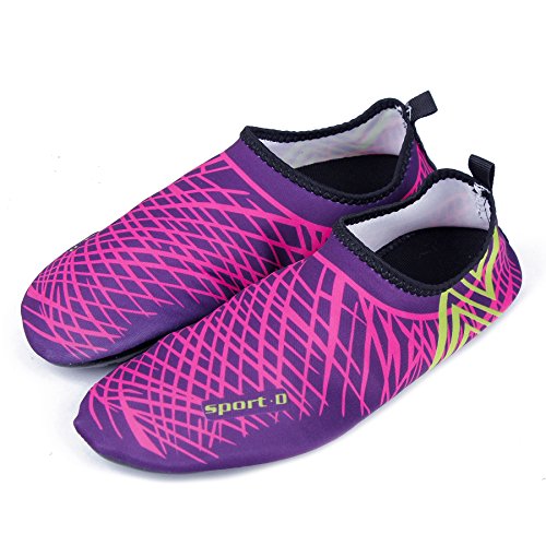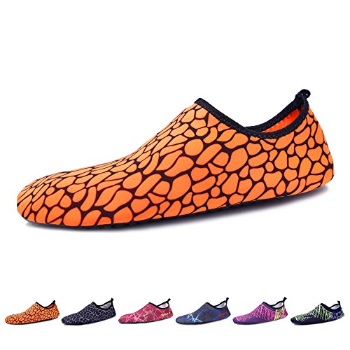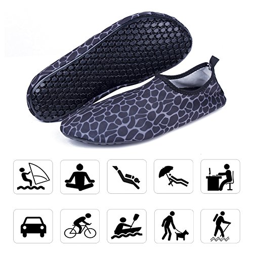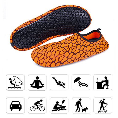 Binding : Apparel Product Description The surface of the water shoes is made of elastic material for fast draining and cross ventilation,a perfect fold-and-go portability,Top-quality rubber sole protects your feet from being hurt by sharp objects,it is perfect for water park,water aerobics,surfing,beach volleyball, weight training, wake-boarding, sailing,swimming,boating,cycling jogging,walking, fishing, garden, lawn, car-washing and diving and yoga. Helps exercise foot muscle. The water shoes are ultra-lightweight. You don¡?t even feel anything but only freedom and comforts. Top-of-the-line neoprene material is stretchy, breathable and retains shape for low maintenance wear. since they are made of 92% polyester and 8% spandex,they are quick-dry and help you feel clean and neat. Note:Your satisfaction is our first priority,If you are not satisfied with your purchase,you can easily reach out to us,we can do our best service for every customer in any time. Note:The size chart is on our description image,please Measure your feet and choose the correct size according to our size chart.