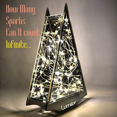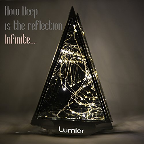 - 1.360 Degrees Dazzling Lights with Starry Illusion: Lumiar Christmas Tree LED shaped Infinite Mirror produces a beautiful 360 degrees’ optical illusion of Stars revolving in the mirror and creates a fantastic spellbinding experience. Whether you are having a party/get-together, or just need an ideal lighting device to dazzle a baby to sleep, our beautiful Christmas Tree light is the perfect choice. This product is also your ideal gift item to show your loved ones that you genuinely care.