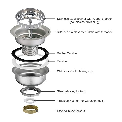 Desfau 3-1/2 Inch Kitchen Sink Drain Assembly With Strainer,Stainless Steel Strainer and Drain Kit,US cUPC Certific