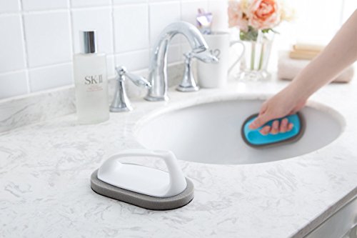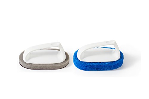 Color: the emery abrasive grit brush-white handle+grey sponge; The microfiber brush-white handle+dark blue microfiber sponge