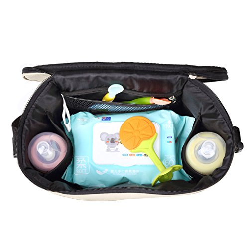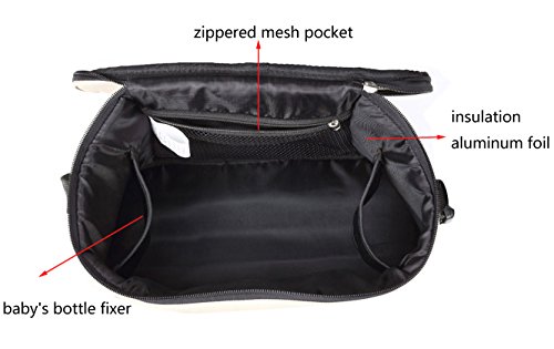 Product Features: - This diaper bag is made of water resistant oxford cloth,reduce the bag weight,and ensure tear resistance. - This diaper bag has spacious place,keeps all necessities of your baby organized and handy. - Zippered mesh pocket with elastic loops keep your baby bottle stay stability. - When it is empty, you can fold up it so that you can easily store it. - This diaper bag has wide shoulder belt,it can be hang on the stroller,reduce the your stress,and also can be use as a shoulder bag. 0