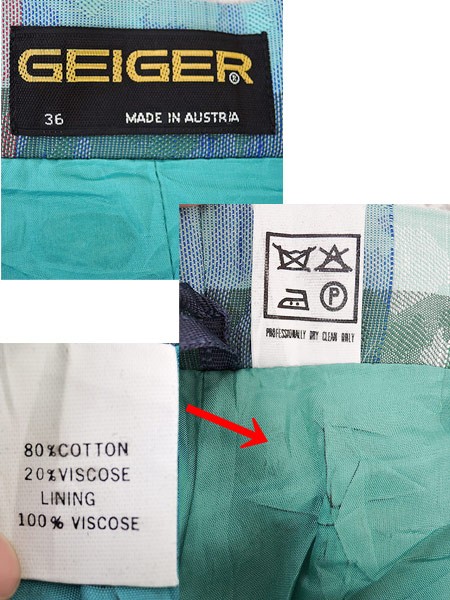 Ladies ブランドGEIGER カラー水色・黄・青・緑 メール便不可 コンディション★★★ 素材コットン・ビスコース(レーヨン) 表記サイズ36 実寸サイズ 着丈 80 cm ウエスト 24 インチ( 62 cm) ※ウエスト・ヒップ以外は平置き採寸
