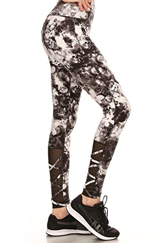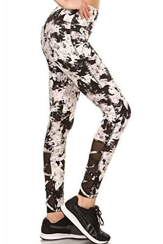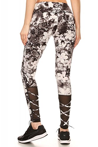 -. Binding : Apparel -. Brand : Pink Mint -. Department : womens -. Feature : 92 %POLYESTER/ 8%SPANDEX / Non see-through, moisture-wicking, breathable and stretchy fabric provides complete coverage / Anti-drop, mid-rise, wide waistband for no muffin top and maximum coverage / Flatlock seams reduce chafing and increase comfort / Gusseted crotch for greater freedom of movement -. ProductGroup : Apparel -. ProductTypeName : PANTS -. Title : Pink Mint Women's Mid Rise Black and White Abstract and Floral P.R.Int Yoga Legging Pants With Non See-Through Fabric and Strappy Mesh Panels